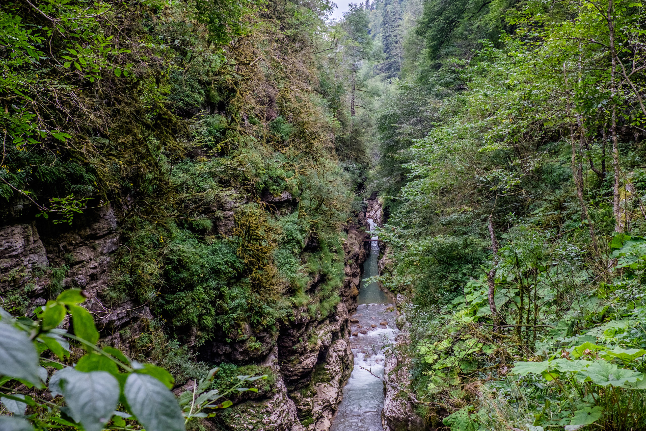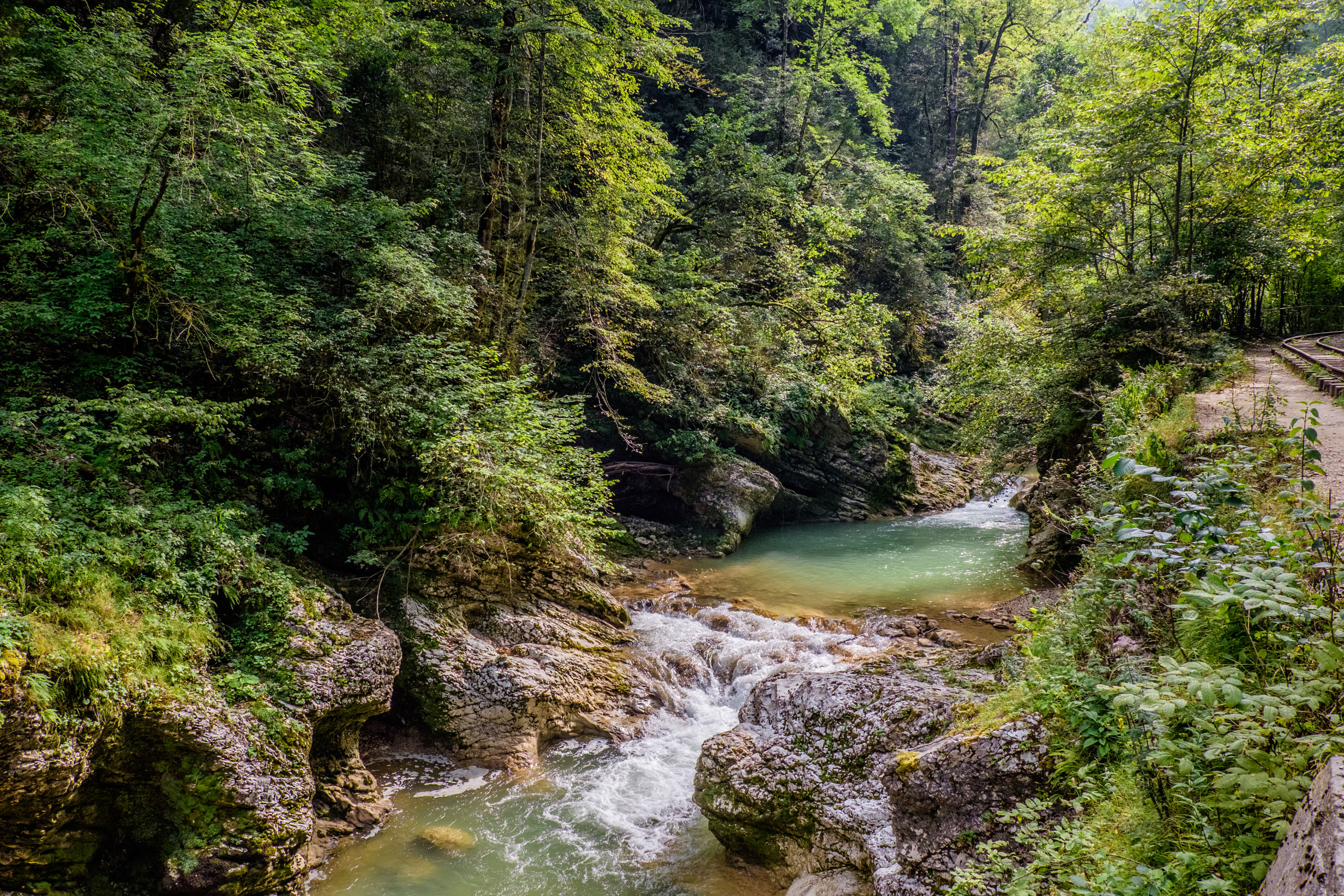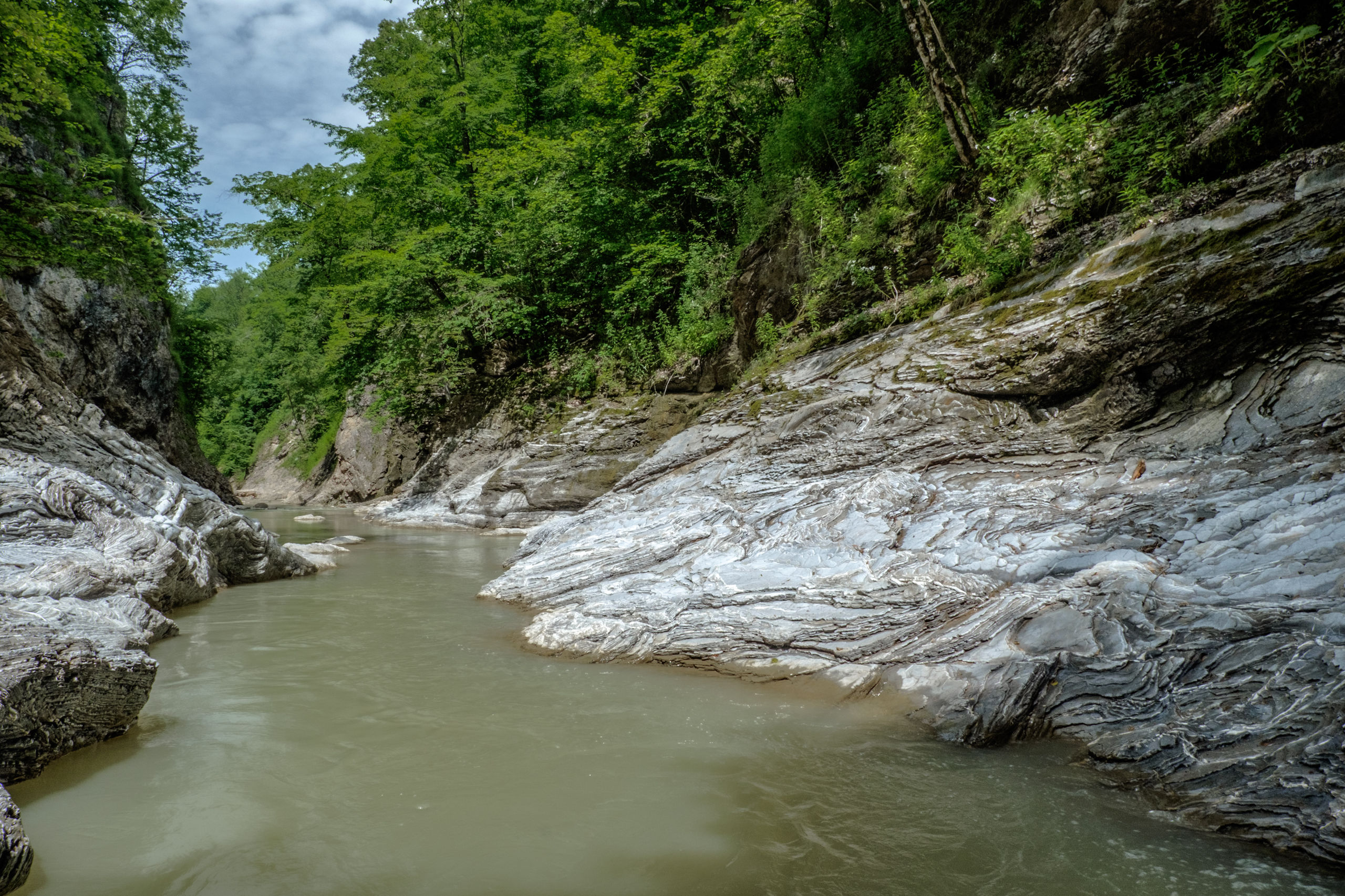 Но главное в этом труднопроизносимом поселке это Хаджохская теснина (Каменномостский каньон) — участок ущелья реки Белой