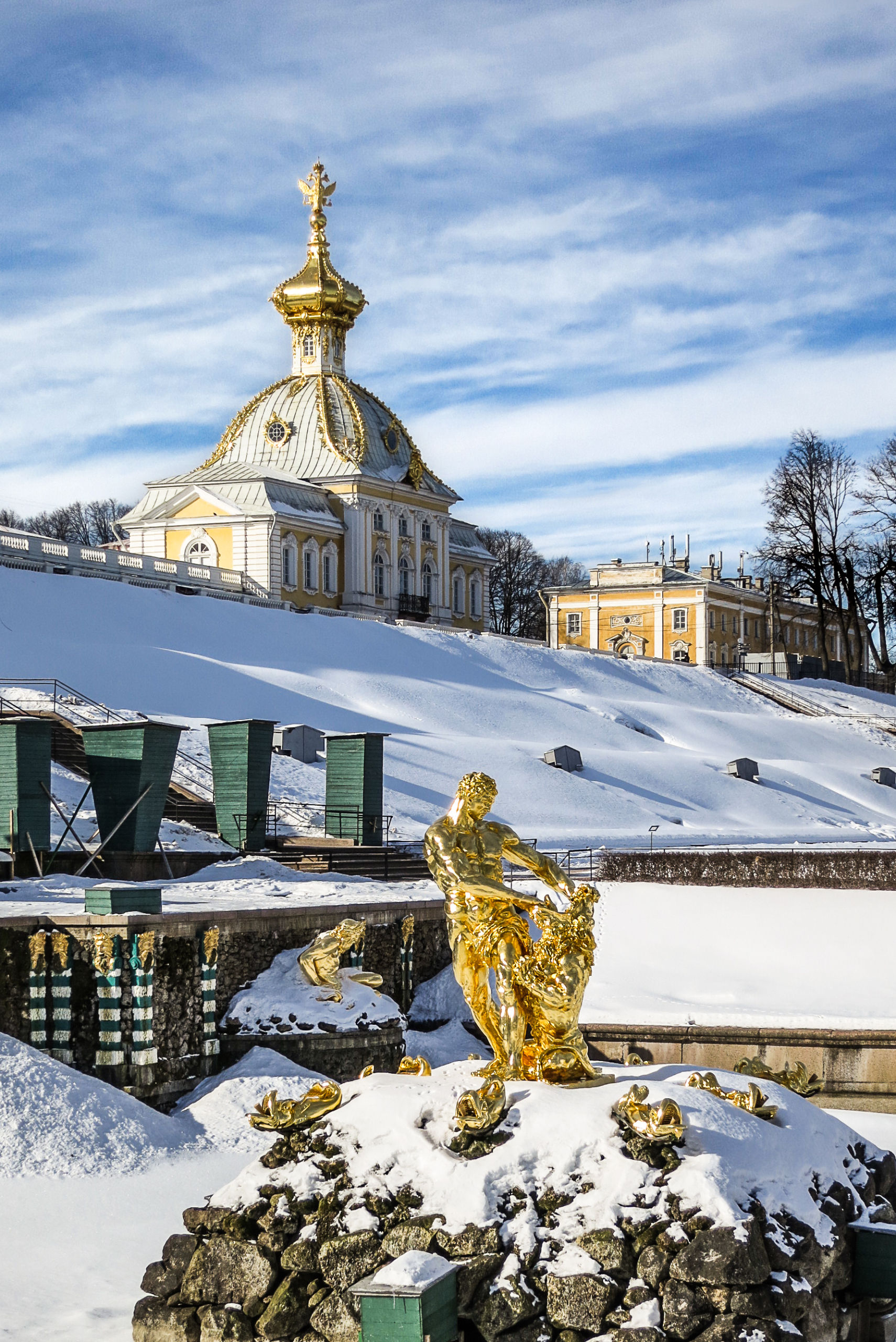 Фонтаны в Петергофе, конечно, не фонтанируют, но их вид, по-моему, тоже очень интересны. Особенно тем, кто привык к их летней реинкарнации.